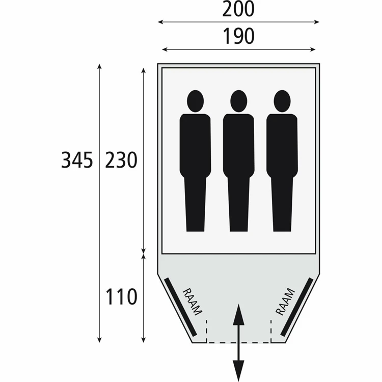 De tent heeft een extra donker en groot slaapvertrek met een lengte van 230 cm. Er is sprake van permanente ventilatie in de tent en afsluitbare ramen met gordijnen. De tent wordt geleverd inclusief haringen, reflecterende scheerlijnen en draagtas.