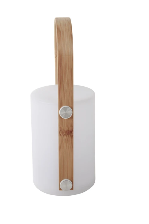 Een sfeervolle oplaadbare tafellamp met een stijlvolle outdoor uitstraling. Geeft een prettig licht door de warme witte LED verlichting. Voorzien van 3 lichtstanden, een kunststof behuizing en een bamboe handvat. De ingebouwde Li-ion accu kan worden opgeladen met een meegeleverde USB kabel. Ideaal voor op een tafel of kastje.