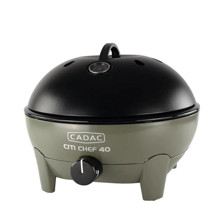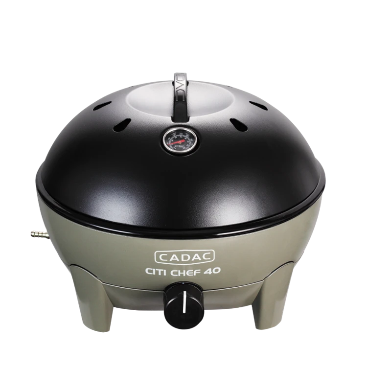 De Citi Chef 40 wordt geleverd inclusief een pandrager, een BBQ rooster en een deksel met thermometer.