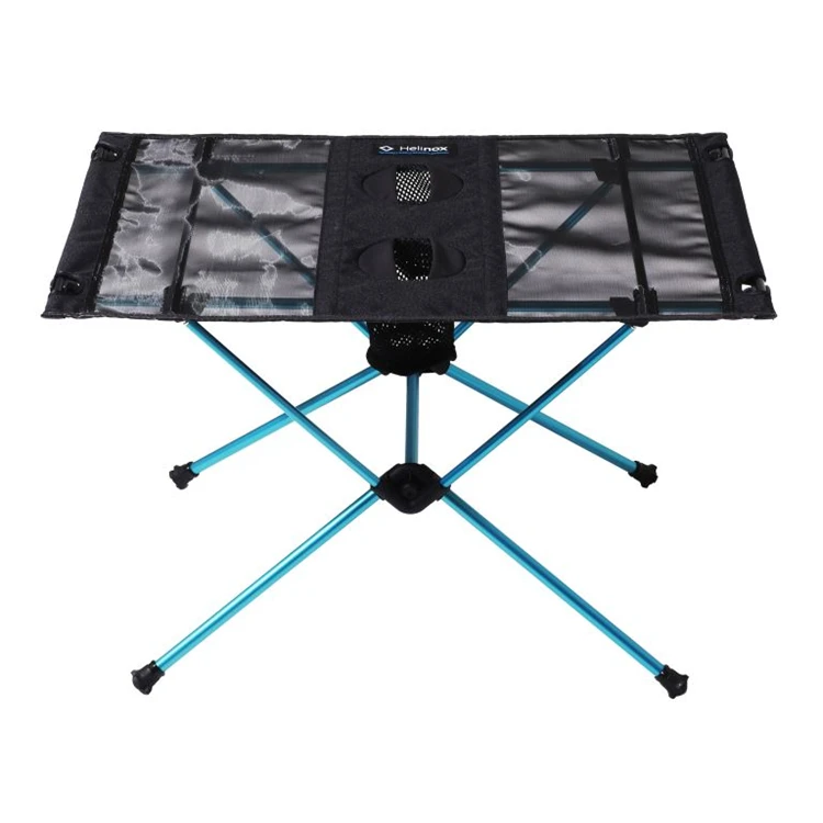 De Table One is een echt draagbare tafel voor in de wildernis, welke zich, in Helinox stijl, bijna zelf in elkaar zet. Het ultra lichte TH72M frame zet het gazen tafelblad onder spanning en pakt klein samen wanneer niet in gebruik. Twee bekerhouders zijn ge�ntegreerd en nemen zo geen plaats in die u nodig heeft voor maaltijden, de kaart of een boek. De tafel heeft een zeer kleine pakmaat zodat deze in iedere rugzak past.