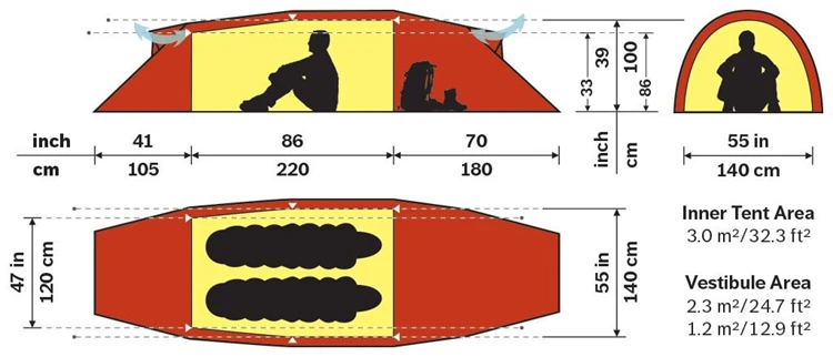 De Kaitum 2 GT van Hilleberg is het type tent dat ideaal is voor trips waarbij het essentieel is dat er zo weinig mogelijk gewicht wordt meegenomen. De Kaitum 2 GT is geschikt om ieder weertype te doorstaan onder een zo groot mogelijk comfort. Het geheim van deze tent is de combinatie van de Kerlon 1200 buitentent en de DAC Featherlite NSL stokken van 9 mm, waardoor het gewicht tot een minimum beperkt blijft zonder aan kracht in te leveren. Het tunnelontwerp is eenvoudig op te zetten en is daardoor geschikt voor zowel trektochten als een verblijf op ƩƩn locatie. Doordat zowel de voor- als achterkant kunnen worden opengezet, is er een maximale luchttoevoer. Dit maakt de Kaitum 2 GT ook erg geschikt voor warmere omstandigheden.