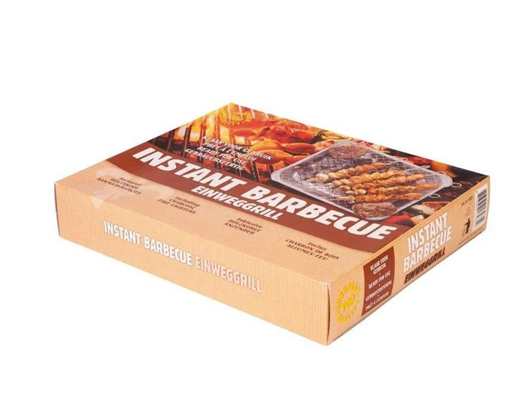 Een kant-en-klare barbecue. Kan direct worden gebruikt. Deze houtskoolbarbecue bestaat uit een aluminium schaal, compleet met houtskoolbriketten en aanmaakblokjes. Enkel aansteken en dan is deze barbecue klaar voor gebruik. Ideaal voor op de camping, tijdens de picknick of aan de waterkant. Goed voor ongeveer twee uur barbecueplezier, door het gebruik van briketten. Na gebruik kan deze bbq worden weggegooid.