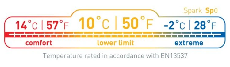 Ultra lichtgewicht, uitstekende isolatiewaarden en slimme innovaties kenmerken de Sea to Summit Spark slaapzakken. Wanneer een hoge isolatie ten opzichte van zijn gewicht gewenst is, dan is de Spark met zijn RDS 850+ Loft dons en het gebruikte 7D & 10D buitenmateriaal de ideale keuze. In alle dons slaapzakken van Sea to Summit wordt gebruikt gemaakt van RDS, Responsible Down Standard, dons. Met dit certificaat bent u er zeker van dat het dons op een diervriendelijke manier van gecertificeerde boerderijen gebruikt is. De UltraDry Down behandeling geeft het dons een waterafstotende eigenschap om er voor te zorgen dat het dons aanzienlijk minder vocht opneemt en sneller droogt. Tevens zorgt deze behandeling er voor dat het dons zijn isolerende werking niet verliest wanneer het vochtig is. Het gebruikte RDS 850+ Loft Dons heeft de beste thermische eigenschappen ten opzichte van zijn gewicht. In vergelijking met 750+ of 650+ Loft dons is er minder dons nodig om dezelfde thermische eigenschappen te behalen. Voor een optimale isolerende werking en om te voorkomen dat het dons op een plek gaat zitten zijn er in de 10D Nylon buitenzijde horizontale en verticale banen aangebracht. Hierdoor zal het dons beter op een plek blijven zitten waardoor gedurende de nacht de isolerende werking op zijn best blijft. De gele strook aan de linker zijde van de slaapzak laat u zien tot hoever de rits geopend kan worden. Hiermee kunt u uniseks en slaapzakken ontwikkeld voor vrouwen makkelijk herkennen. Bij de z.g. Womens Specific slaapzakken zit de rits aan de rechterzijde. De Sea To Summit Spark slaapzakken zijn verkrijgbaar in twee lengte maten en vijf isolatie waarden; Sea To Summit Spark 0: Comfort 14°C R= 225g/L= 260g, Sea To Summit Spark 1: Comfort 9°C R= 340g/L= 385g, Sea To Summit Spark 2: Comfort 4°C R= 490g/L= 560g, Sea To Summit Spark 3: Comfort -2°C R= 665g/L= 745g, Sea To Summit Spark 4: Comfort -8°C R= 880g/L= 985g. Producteigenschappen Mummy vorm voor efficiente isolatie. Ideaal voor zomerhikes of meerdaagse trailruns. Kan ook als liner gebruikt worden in een tweede slaapzak voor veel extra warmte. Ultralichte 7D stof voor minimum gewicht en pakvolume. RDS 850+ Loft Premium Goose ULTRA-DRY Down™ voor de beste isolatie/ gewicht ratio. Verticale borststroken om verplaatsing van het dons tegen te gaan. Doorgestikte strookconstuctie om gewicht te minimaliseren en dons op zijn plaats te houden. Ultra-Sil™ opbergzakje.