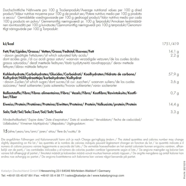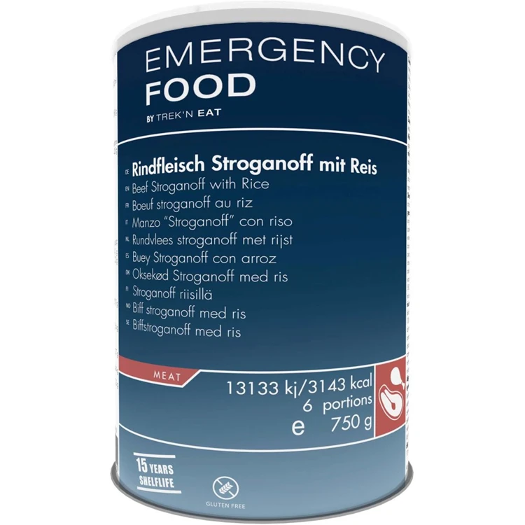 Noodmaaltijd in blik 15 jaar houdbaar. Alleen kokend water nodig voor bereiding. Maaltijd is in 5 minuten klaar. Perfect voor in de kelder of camper.