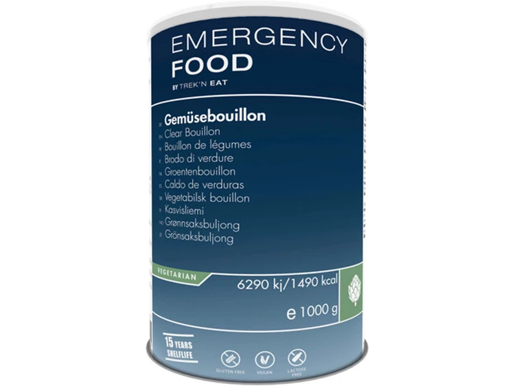 The clear vegetable bouillon from Emergency Food is practical for quickly preparing soups or sauces with little effort. Simply pour cold or hot water on