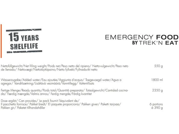 Noodmaaltijd in blik 15 jaar houdbaar. Alleen kokend water nodig voor bereiding. Maaltijd is in 5 minuten klaar. Perfect voor in de kelder of camper.