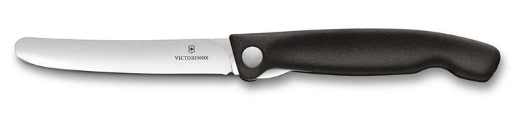 Opvouwbaar groente-schilmesje, Victorinox, Swiss Classic. Multifunctioneel en compact schilmesje voor zowel in -als outdoor activiteiten. Lemmet: RVS. Handvat: Zwart Polypropyleen. Verpakking: Blister.